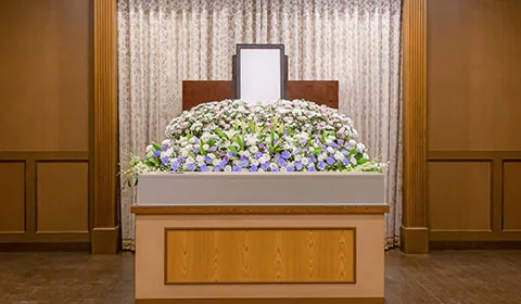 さがみ典礼の家族葬は、ご搬送・ご安置の後、通夜式を行わず、告別式を執り行い、その後に火葬を行う流れです。