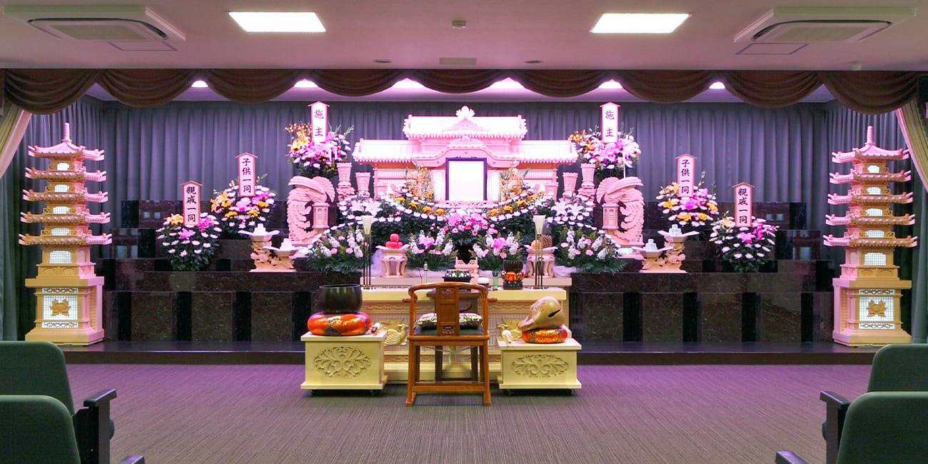 1階と2階に式場があり、1階が塗りの祭壇、2階は白木の祭壇になっています。