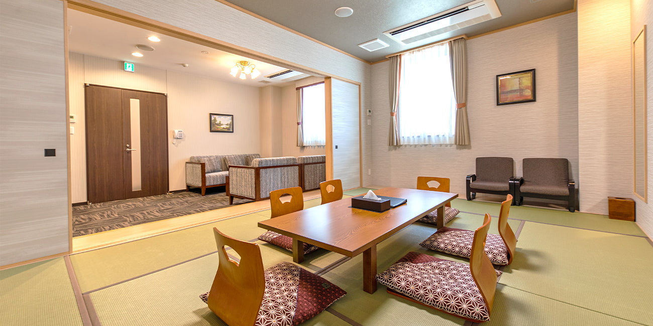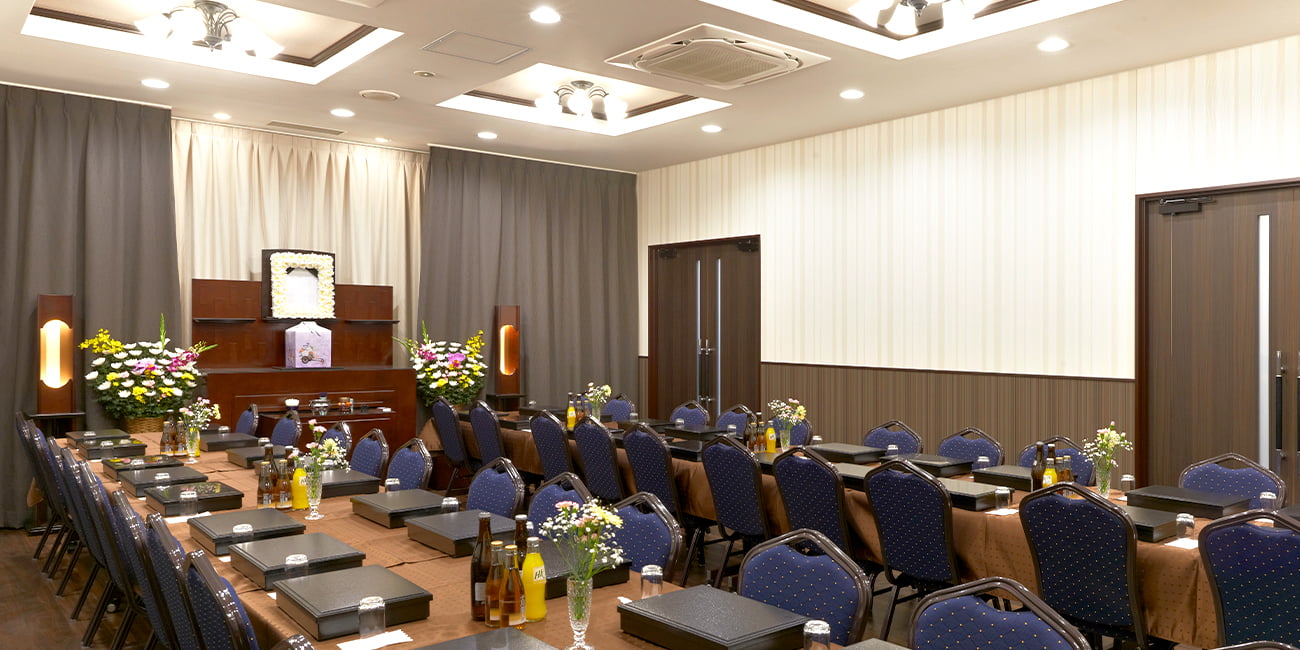 フロアは1階が霊安室、2階及び3階が式場となっております。宿泊施設も完備しておりますが、周辺にホテルもありますので、そちらでお泊まりいただくことも可能です。