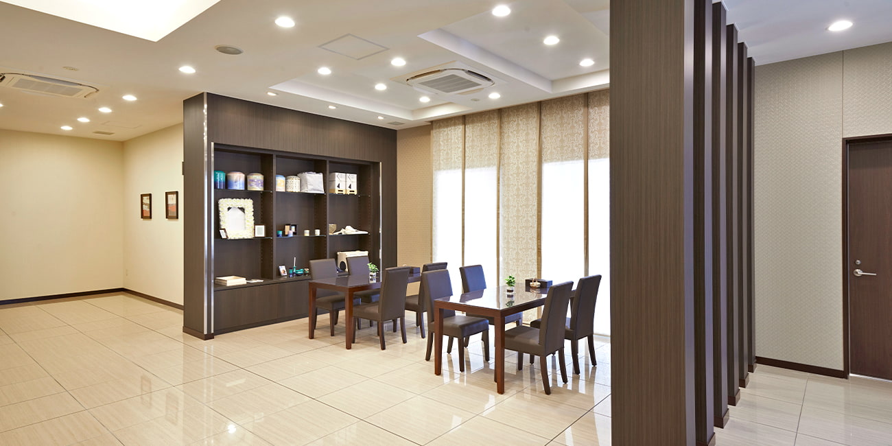 飯能葬斎センターは、駅から徒歩6分ほど近くの、近隣に商店街がある全館バリアフリーの会館です。商店街へ買い物に出かけることや、故人様へのお供え物を購入しやすい立地と言えます。
