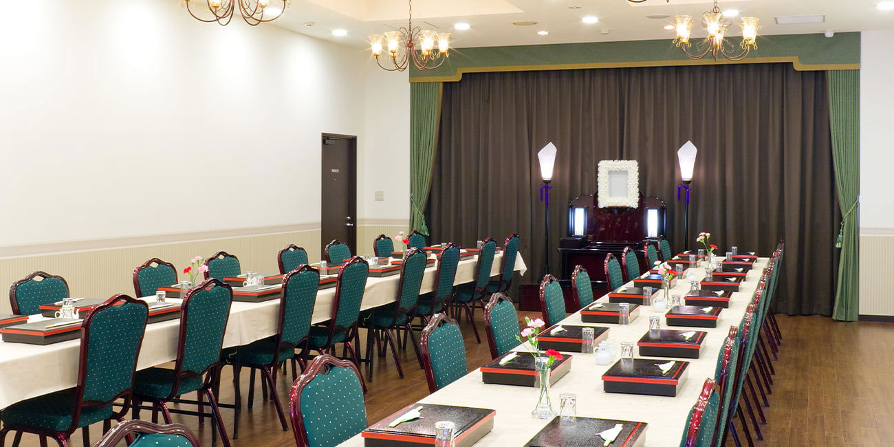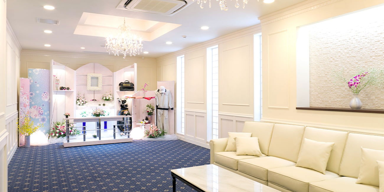 当館は小さな家族葬を行いたい、というご希望を持つお客様にぴったりな会館です。ファミリールームを完備し、式場と控室が隣接しておりますので、移動が少ないという特徴があります。私達スタッフはお客様がお声をかけやすい場所にいつも居ますので、困った時は気軽にお声がけください。お葬式以外でも、相続に関することや法律など様々なお悩みに対応いたします。勿論、スタッフからお声をかけさせていただくこともありますので、ご安心ください。