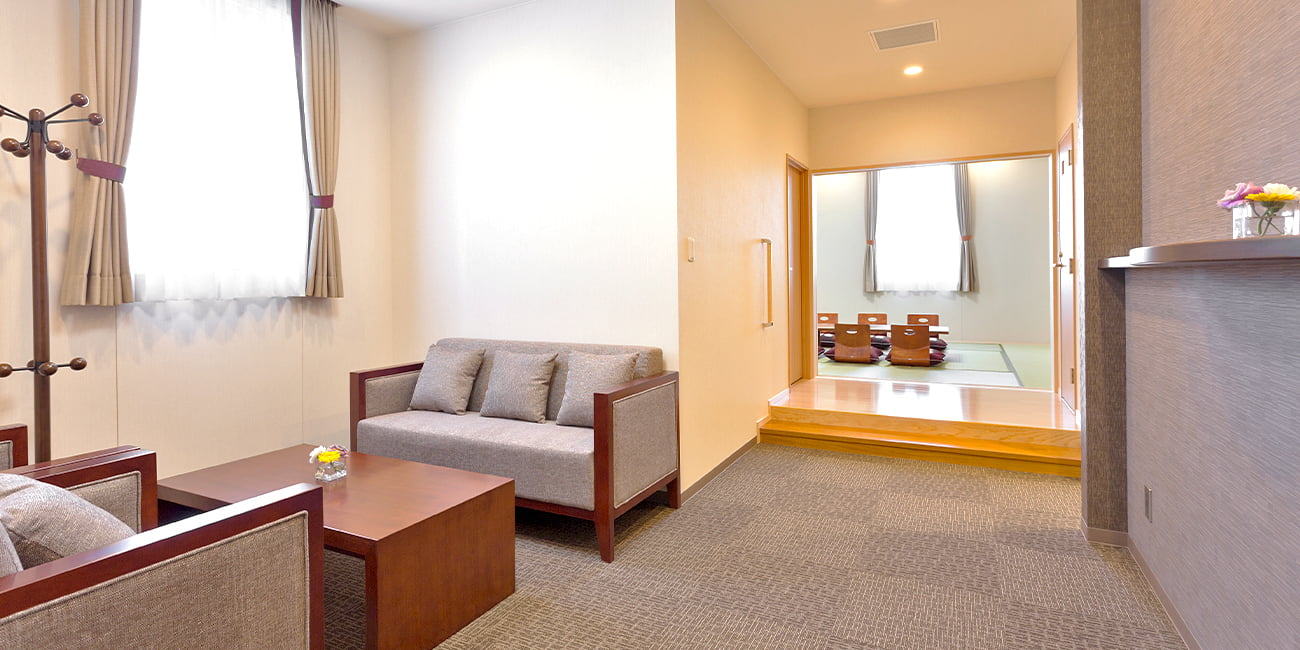 せんげん台駅前葬斎センターはフロア式になっていることで、貸切のように使用できる葬儀会館です。当館であれば他会葬者様と接近しあうことなく、お葬式を行うことができます。1階には霊安室がございますので、葬儀当日までお預かりさせていただくことが可能です。