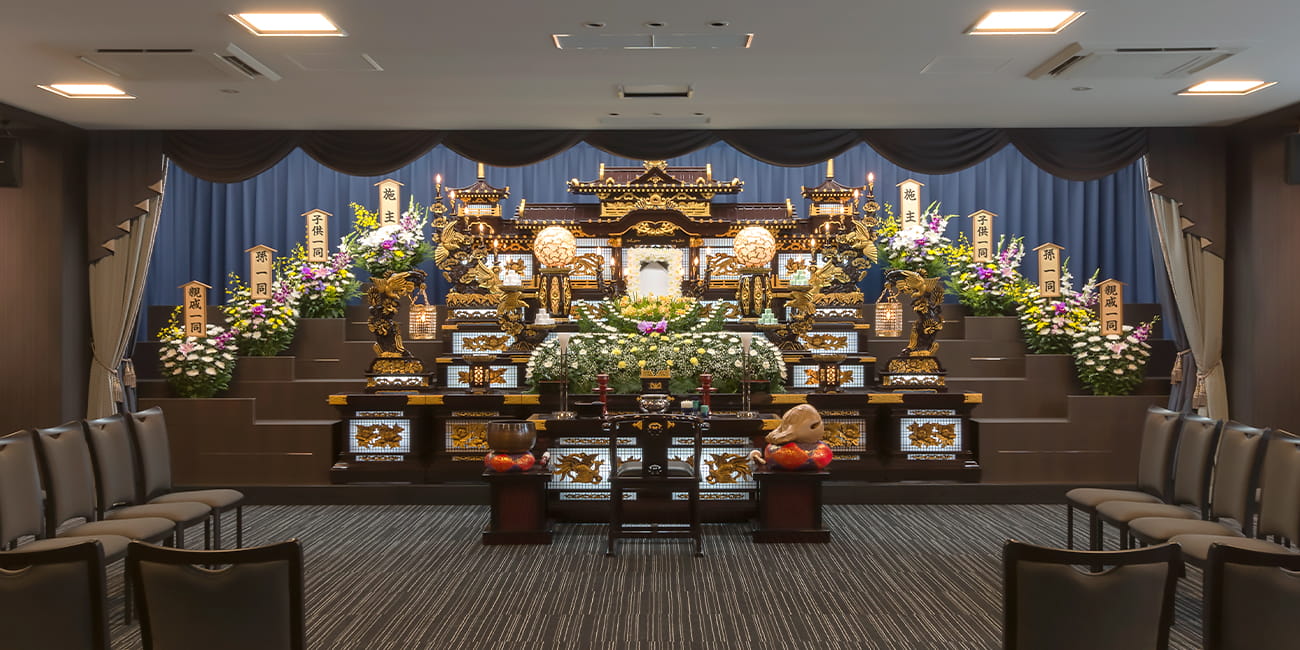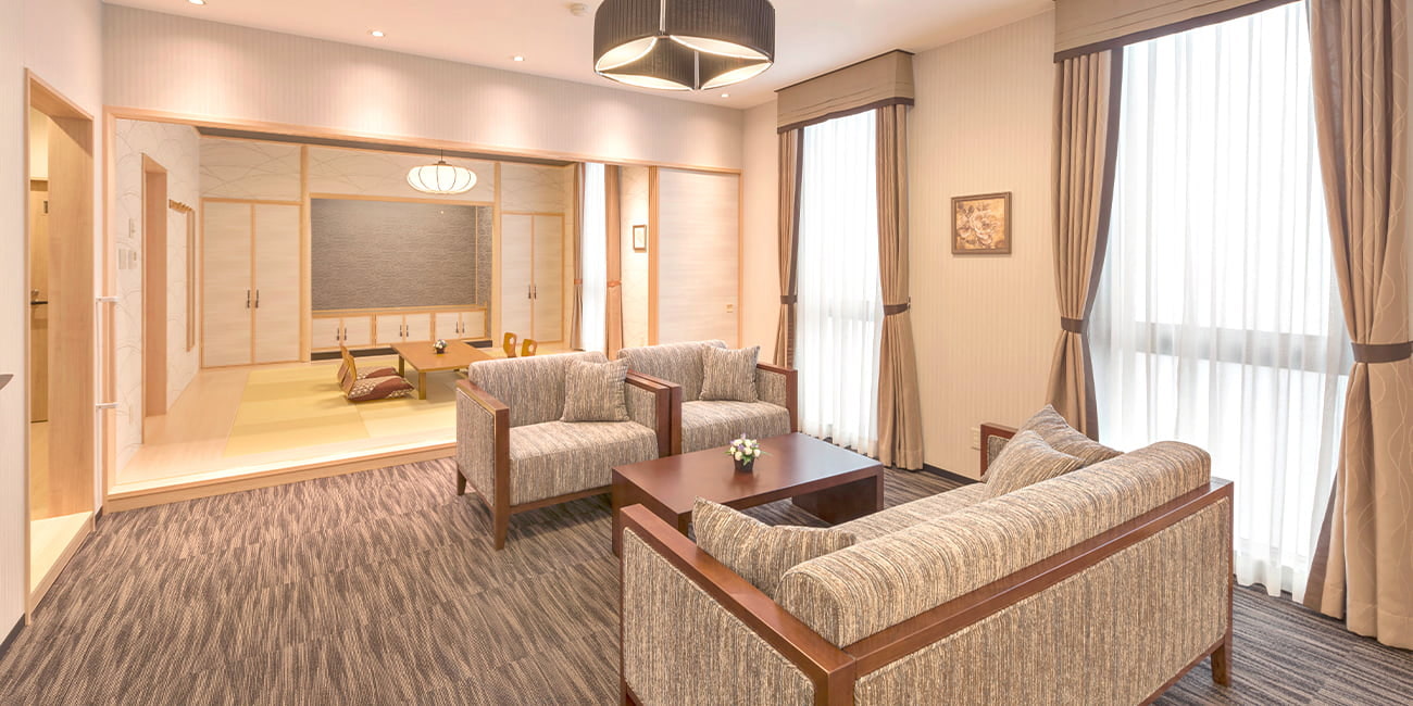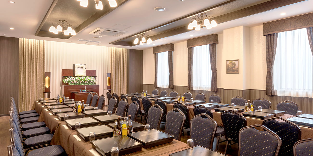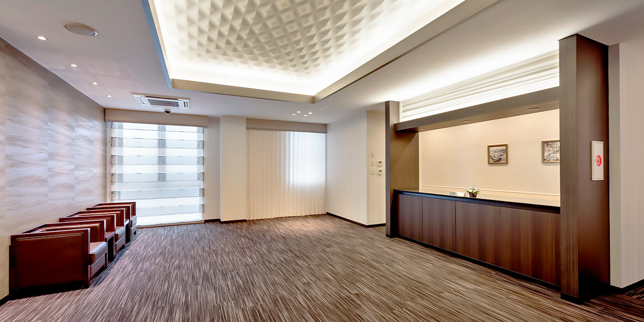 式場は1式場のみとなっておりますので、葬儀当日はお客様だけで過ごすことが出来ます。他のお客様にお気遣いいただく必要がございませんので、ゆっくりとお見送りできます。また、お別れだけを行うための霊安室も完備しております。全館バリアフリーであり、トイレや控室も広めの作りですので、ゆったりと使えるようになっております。