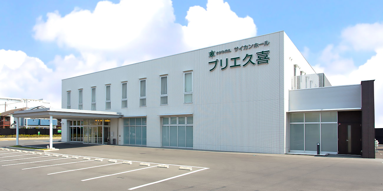 プリエ久喜は、家族葬から一般葬まで対応できる全館バリアフリーの葬儀会館です。久喜駅からも近く、イトーヨーカドーが近くにあるので分かりやすい立地となっております。駐車場も56台完備しておりますので、お車でのご来館の際にも安心です。