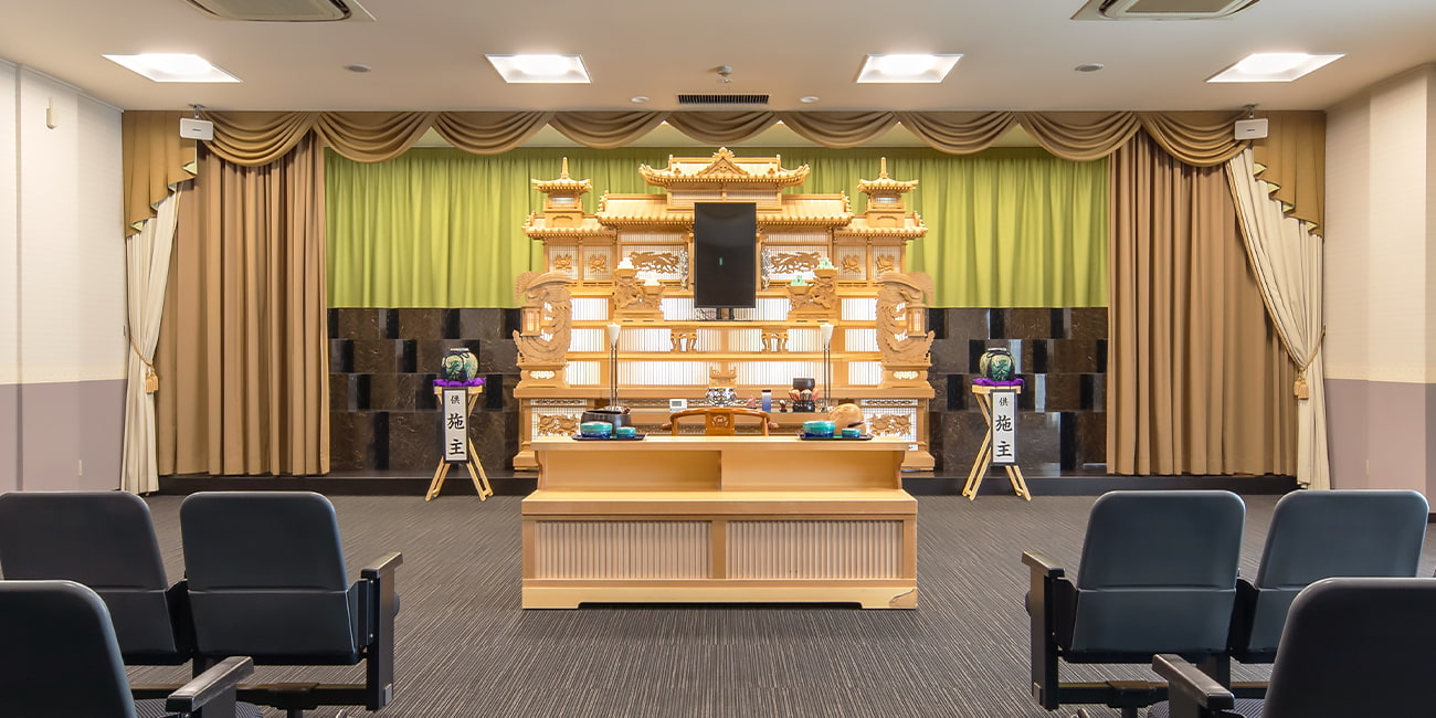 1階は家族葬、2階は一般葬向けの規模が大きい葬儀をおこなえる式場です。