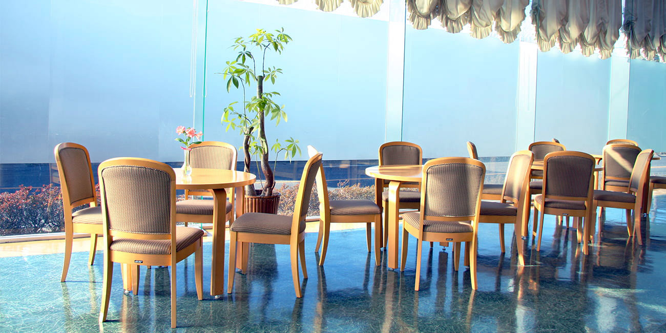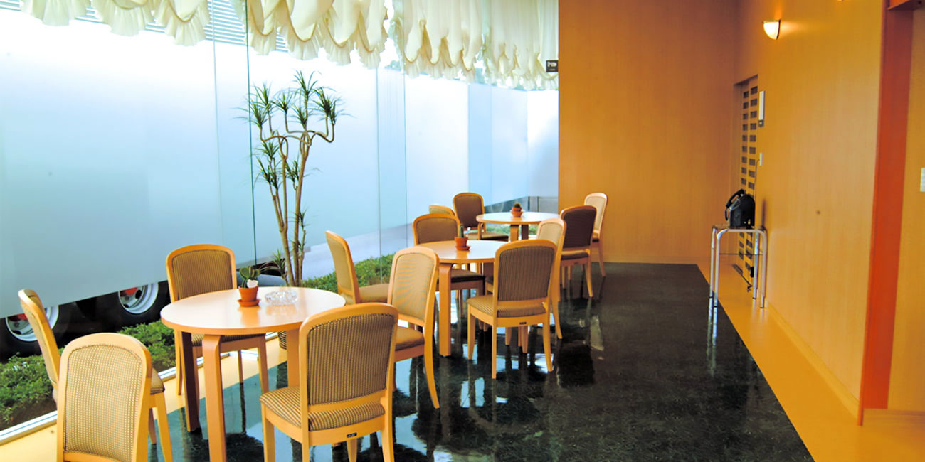 ガラス張りで日中は陽の光が差し込み、暖かな雰囲気で葬儀をおこなえます。