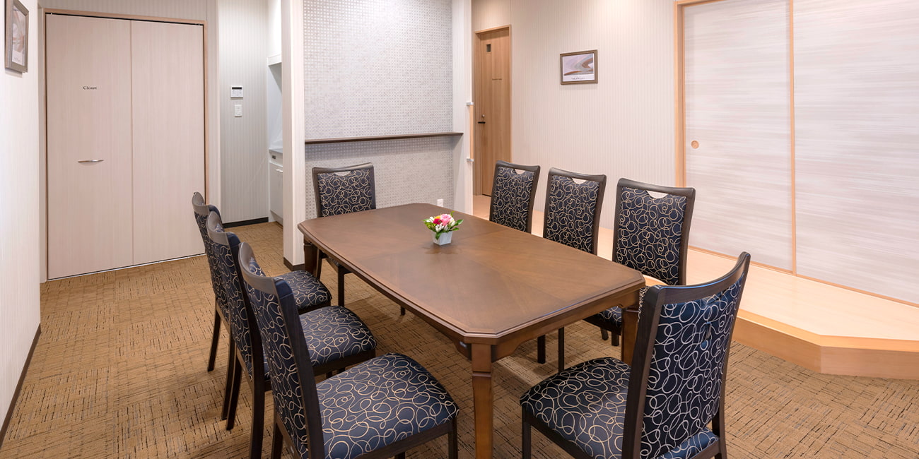 家族葬用のファリミールームと中規模の葬儀に対応しており、1日に2件まで対応可能です。