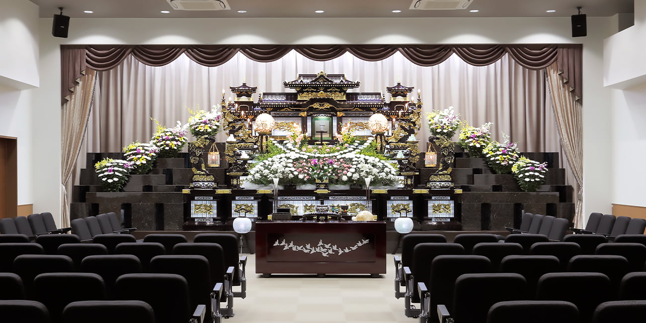 当会館は、故人様を想ったご提案・心配りを心掛けております。お仕事や趣味など、故人様に関連するものは出来るだけ葬儀の中に組み込み、ご遺族様がより故人様を感じられるような設計を意識しております。誠心誠意お手伝いさせていただきますので、お気軽にお問い合わせください。