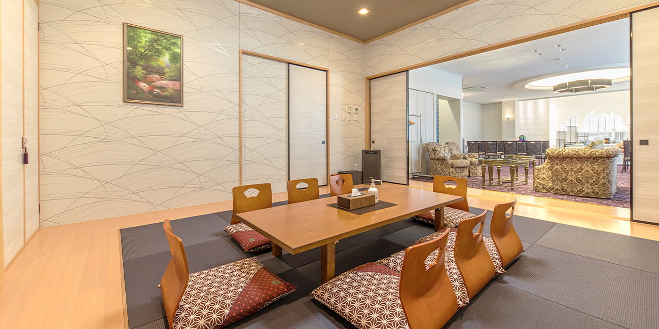 式場と親族の控え室が一緒の部屋になっており、故人様に寄り添いやすい設計です。