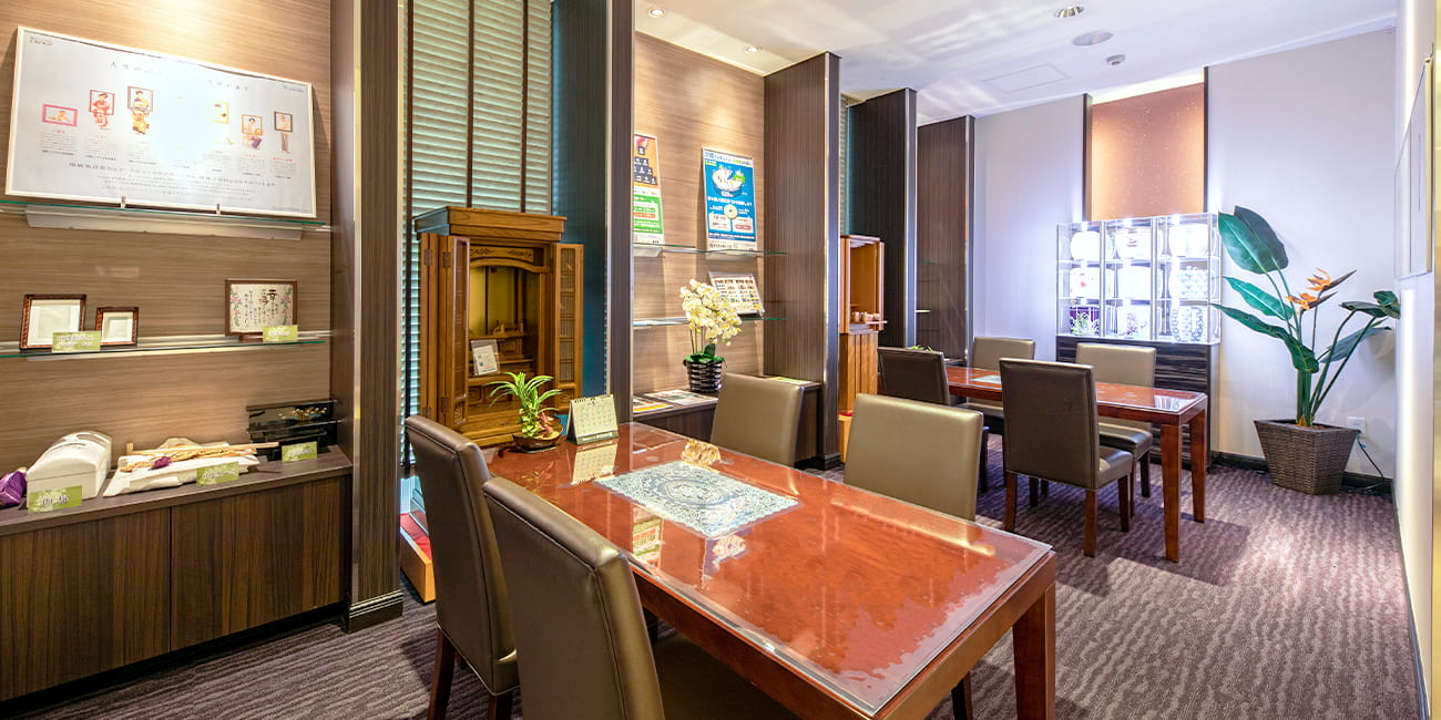 当館は病院へのお迎え、打ち合わせ、お葬儀の施行、ご請求まで一貫して携わります。最後までサポートすることで、ご家族様にとって心に残るお葬式にしたいと考えております。厚生労働省認定「一級葬祭ディレクター」の資格を有するスタッフも対応いたしますので、是非ご相談ください。