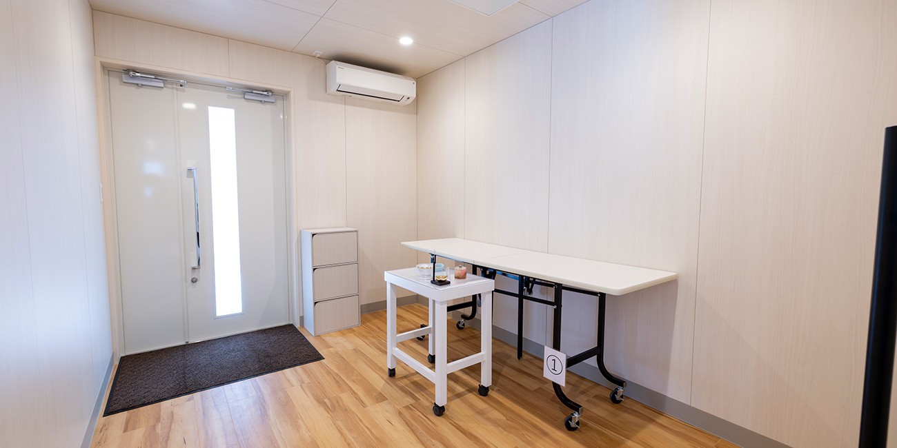 さがみ典礼の家族葬星の宮は、西武新宿線・池袋線『所沢駅』から徒歩15分の好立地で1日1件の貸し切り専用です。まるで自宅にいるような感覚になる、プライベート家族葬ホールとなっており、親族控室は和洋室を設け最新の設備にてお通夜から告別式、そして家族葬、法事・法要などあらゆる葬祭儀式にご利用いただけます。また、厚生労働省認定「一級葬祭ディレクター」の資格を有するエキスパートが対応いたします。