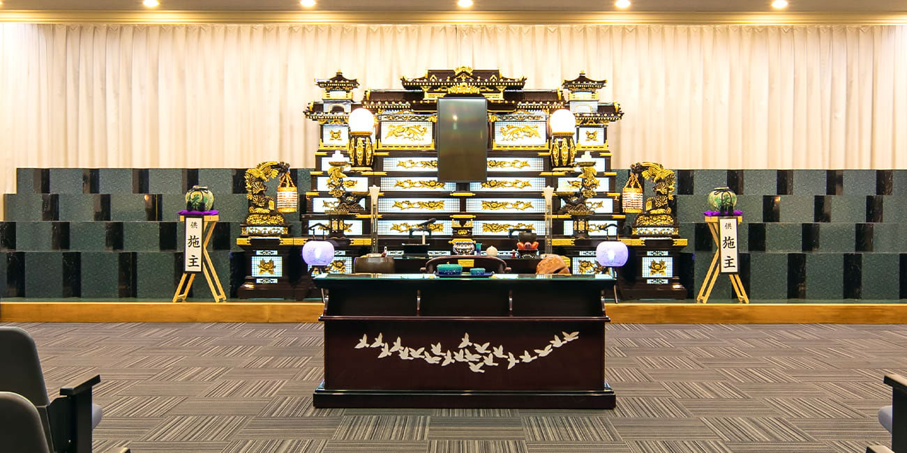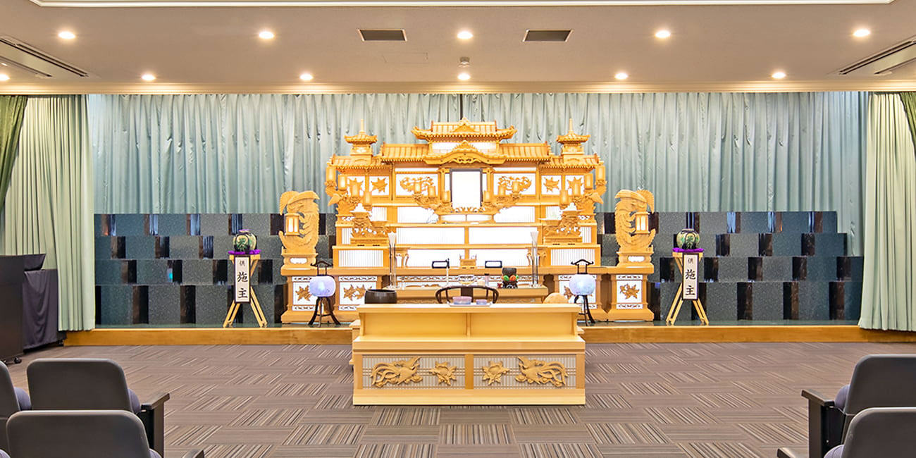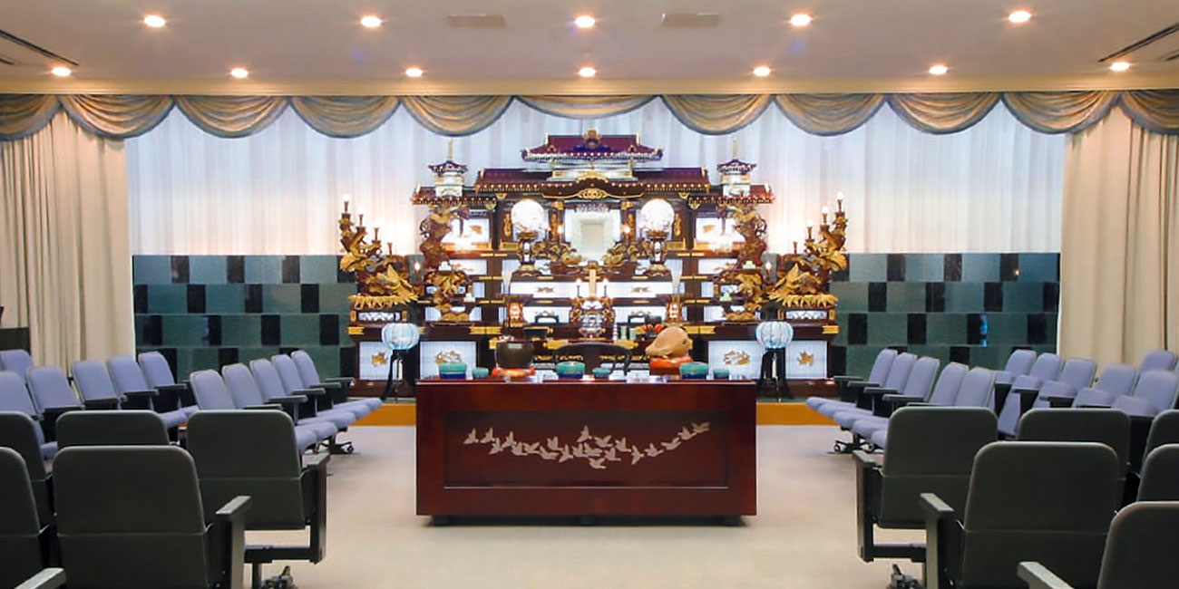 100名様規模の葬儀をおこなえる式場です。落ち着いた気持ちでお過ごしいただけます。