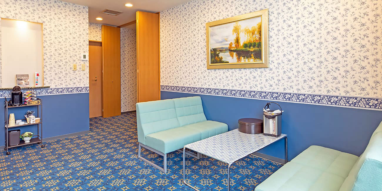 親族控え室やお寺様の部屋、式場受付、お清め場など全てワンフロアとなっております。