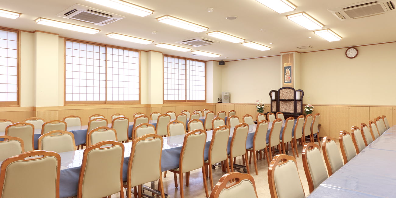 会食室(最大84人)、法要室(最大84人)